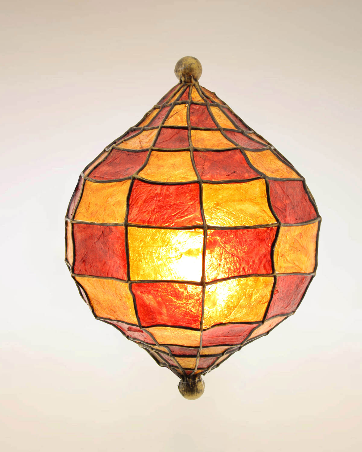 Originali applique realizzate in fibra di vetro tirata a mano, con struttura in ferro, decorate con nero antichizzato oro a quadri. Donano ad ogni ambiente un’atmosfera giovane, fresca ed allegra. Graziose applique che evocano il magico stile arabo, in grado di valorizzare ogni ambiente. Disponibili in color rosso scuro combinato con arancio o arancio combinato con bianco. Misure: altezza cm 35 x larghezza cm 25,5 x profondità cm 16. Dotate di impianto elettrico a norma.