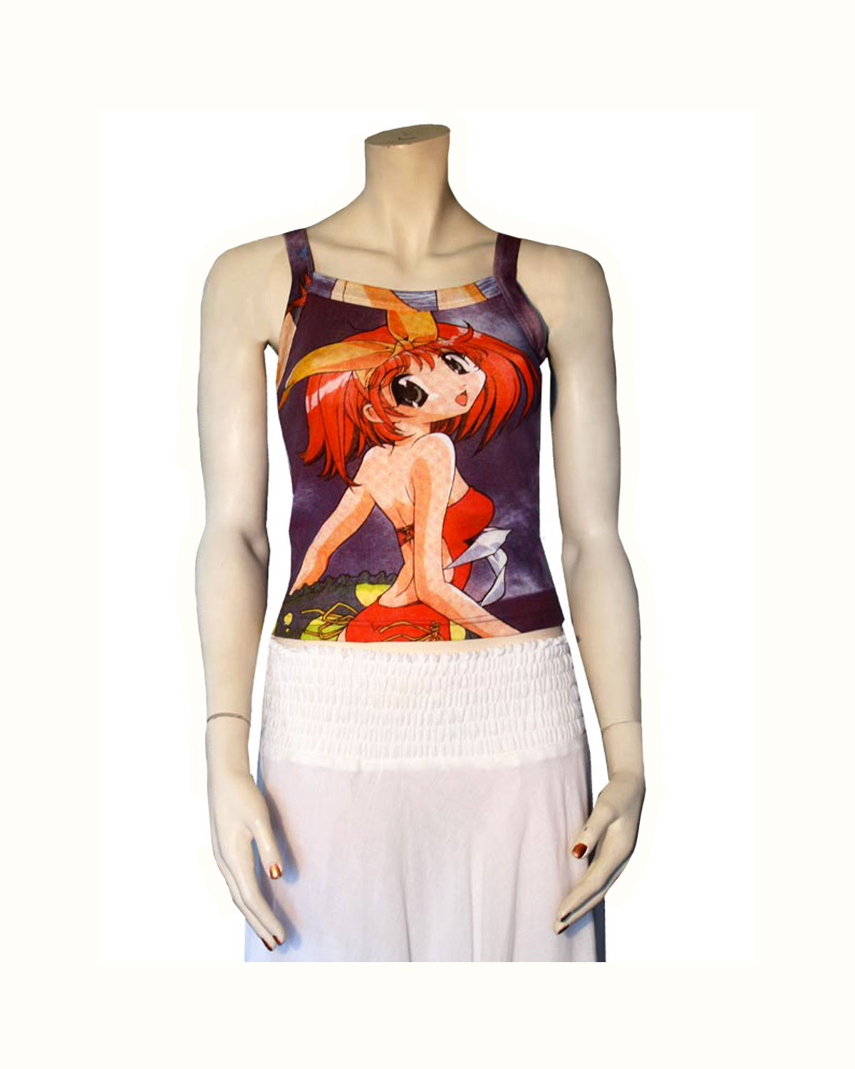 Originali canotte donna, realizzate in thailandia da artigiani locali con stampe di personaggi dei fumetti. Disponibili in colori assortiti. Taglia unica.