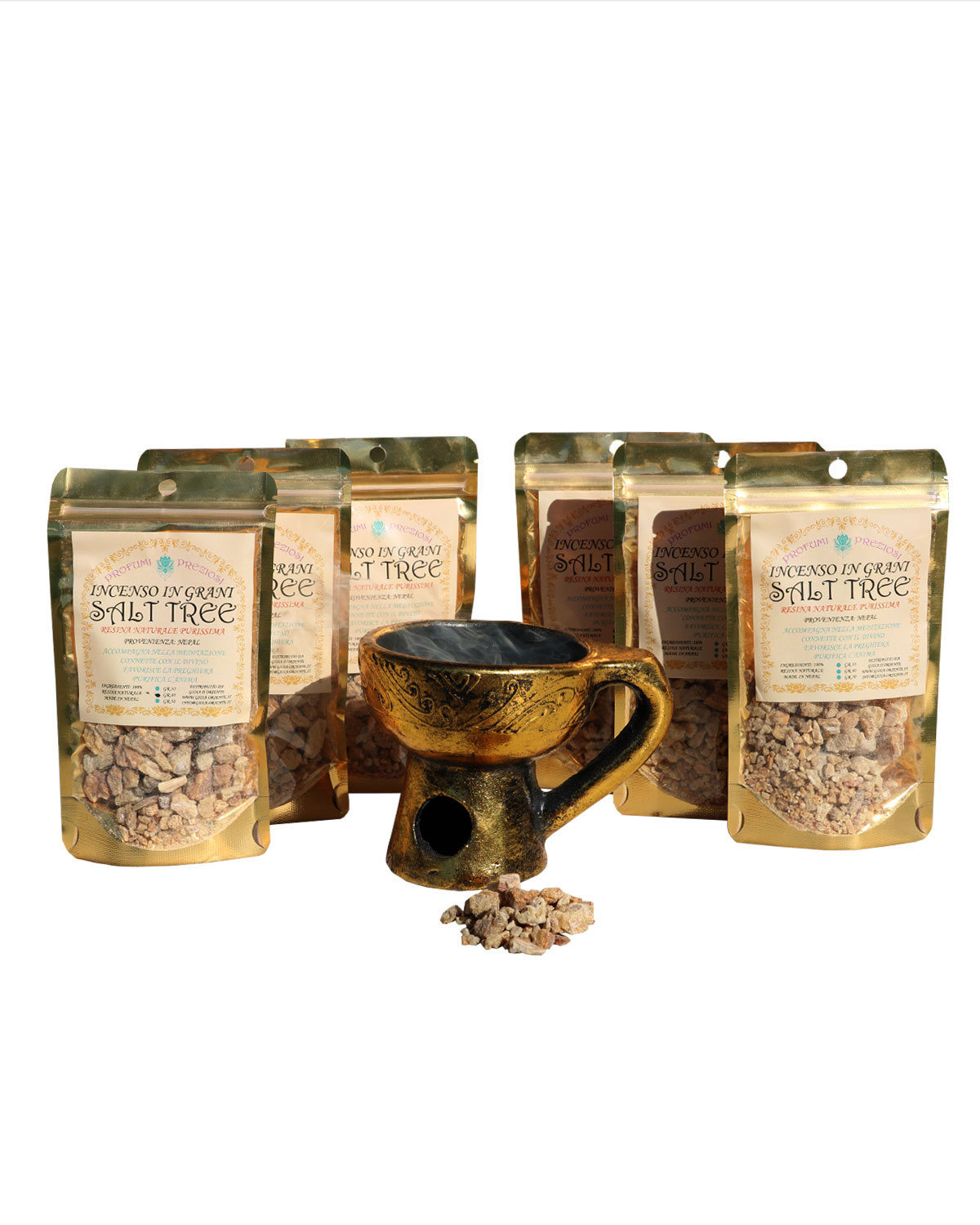 PROPRIETA’ E CARATTERISTICHE DELL’ INCENSO SALT TREE: Questo albero è originario dell’Asia meridionale, che va da sud dell’Himalaya, dal Myanmar al Nepal orientale, all’India e al Bangladesh. La resina di Sal Tree ha un potente profumo speziato e muschiato e molto piacevole. Promuove la connessione con il mondo del Divino, la preghiera e l’elevazione, purificando il tuo io interiore e accampognandoti nella respirazione e meditazione.