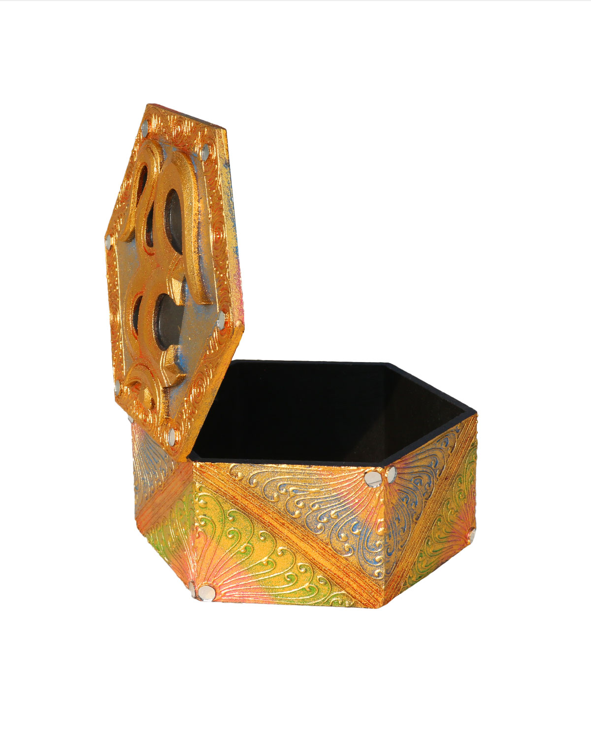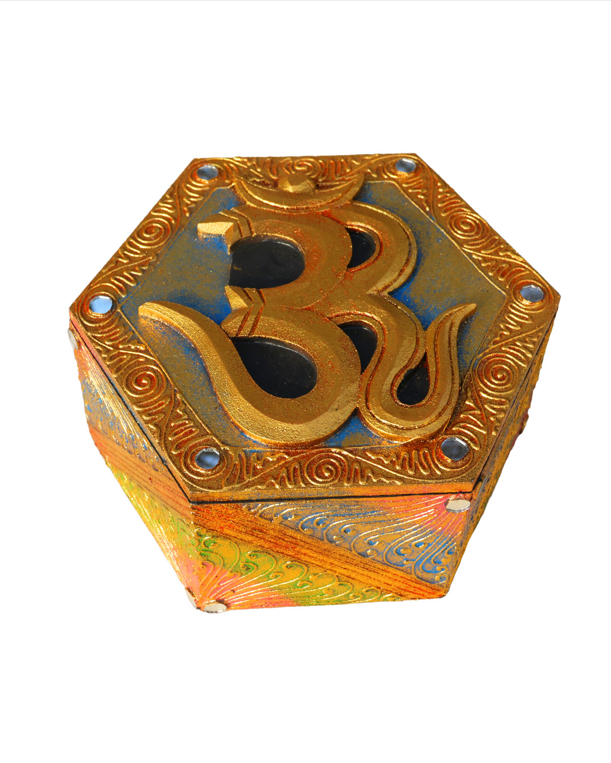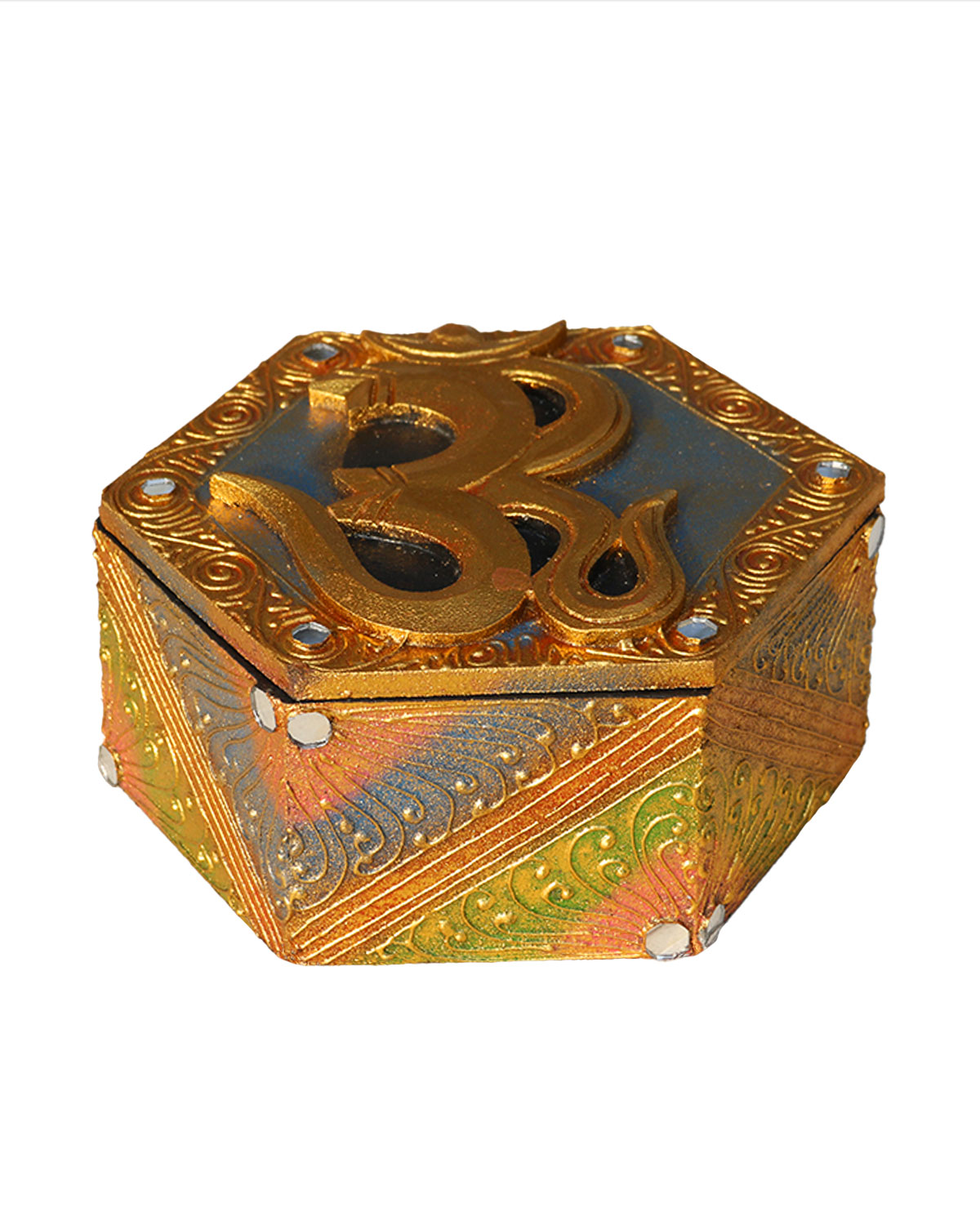 SCATOLA ESAGONALE GRANDE CON OM DORATE