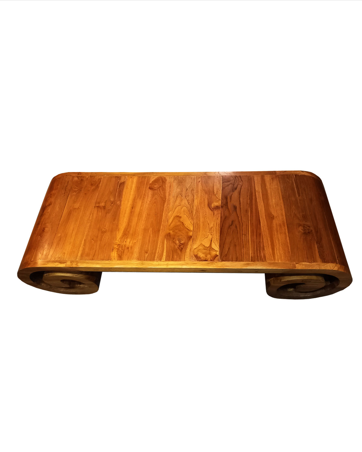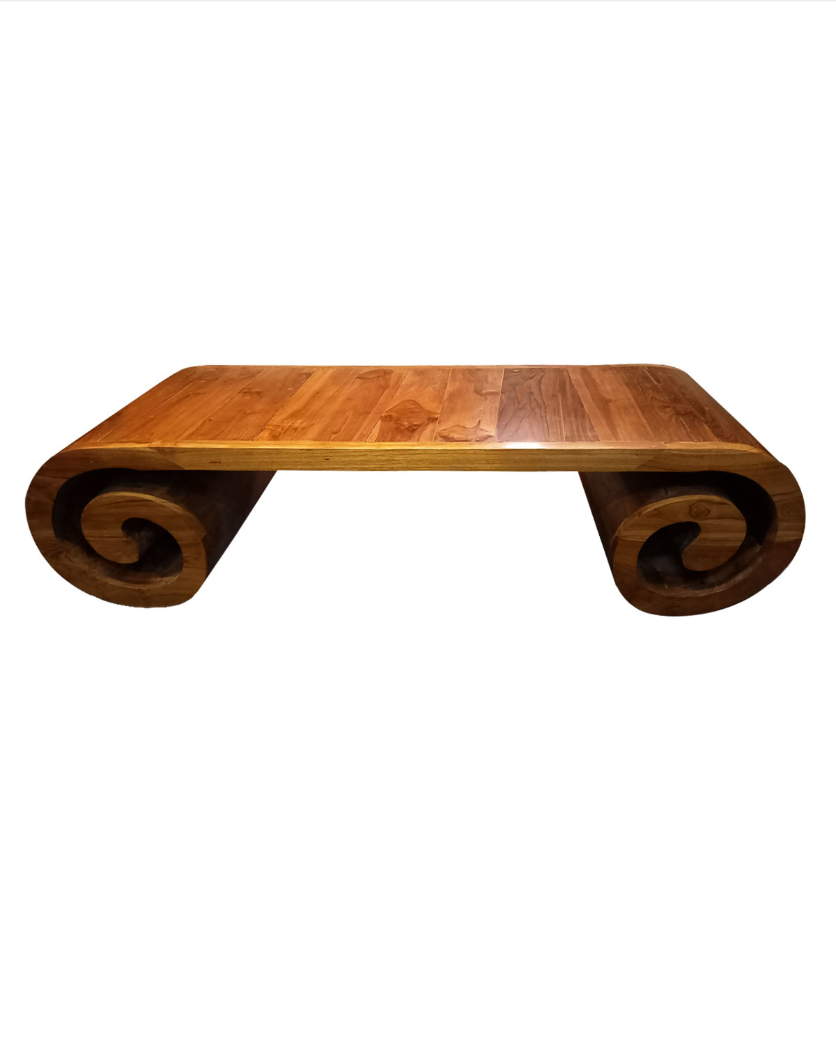 TAVOLINO BASSO IN LEGNO DI TEAK CON SPIRALI