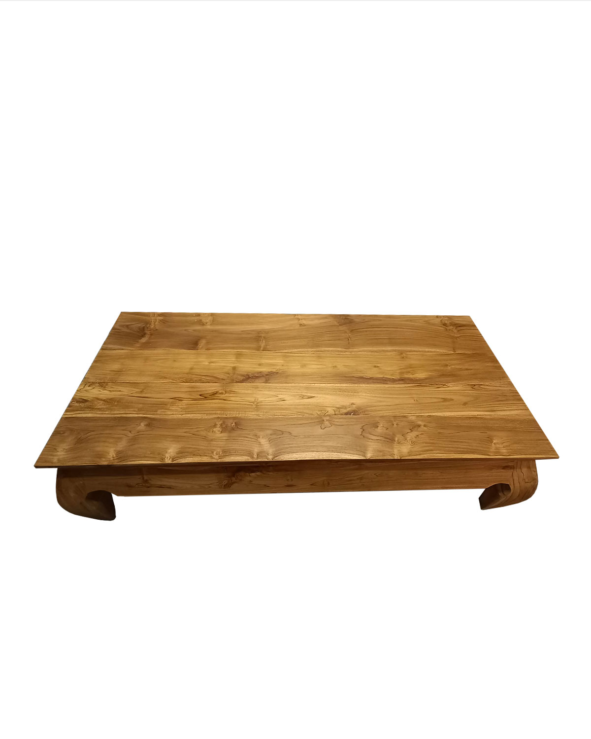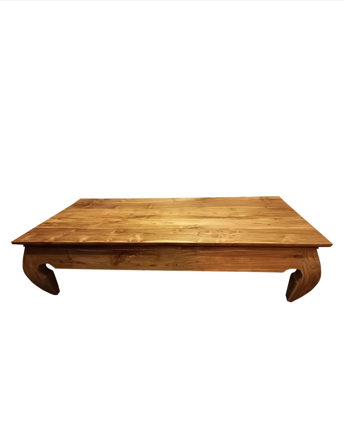 Originale e imponente tavolo realizzato da falegnami indonesiani in legno di teak massello con tecniche artigianali. Dalla caratteristica forma detta opium table si presenta come tavolo basso con gambe arrotondate e sagomate.Bello per arredare sale , studi, scuole yoga e centri olistici a cui regala un sensibile tocco etnico. Disponibili color teak chiaro. Misure: lunghezza cm 150, profondità cm 80, altezza cm 38, chilogrammi 32 circa.